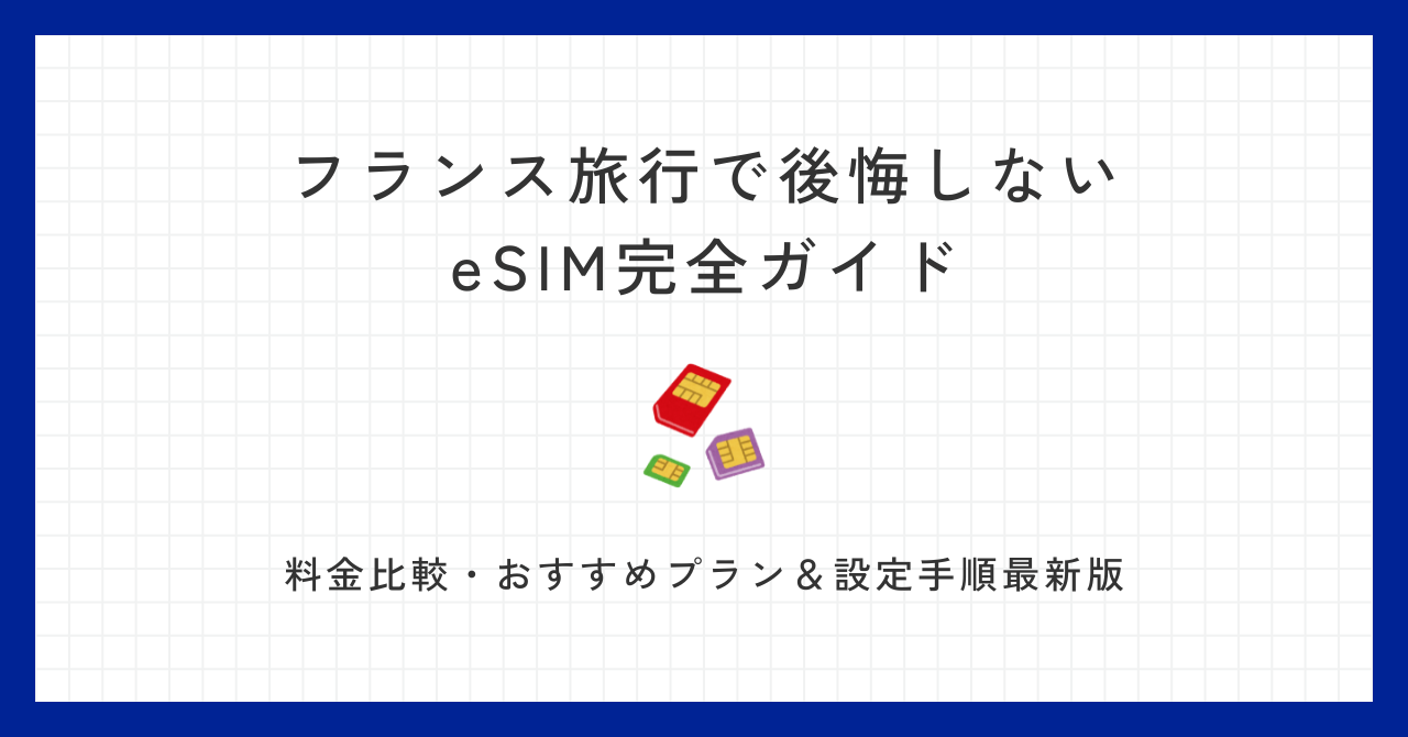 本記事では、フランスで使えるeSIMを徹底比較し、2025年最新のおすすめプランや料金相場、設定手順、注意点までやさしく丁寧に解説します。初めての方でも迷わないよう、対応機種のチェックや購入のポイントまで網羅しているので、快適な海外通信準備の参考にしてください。