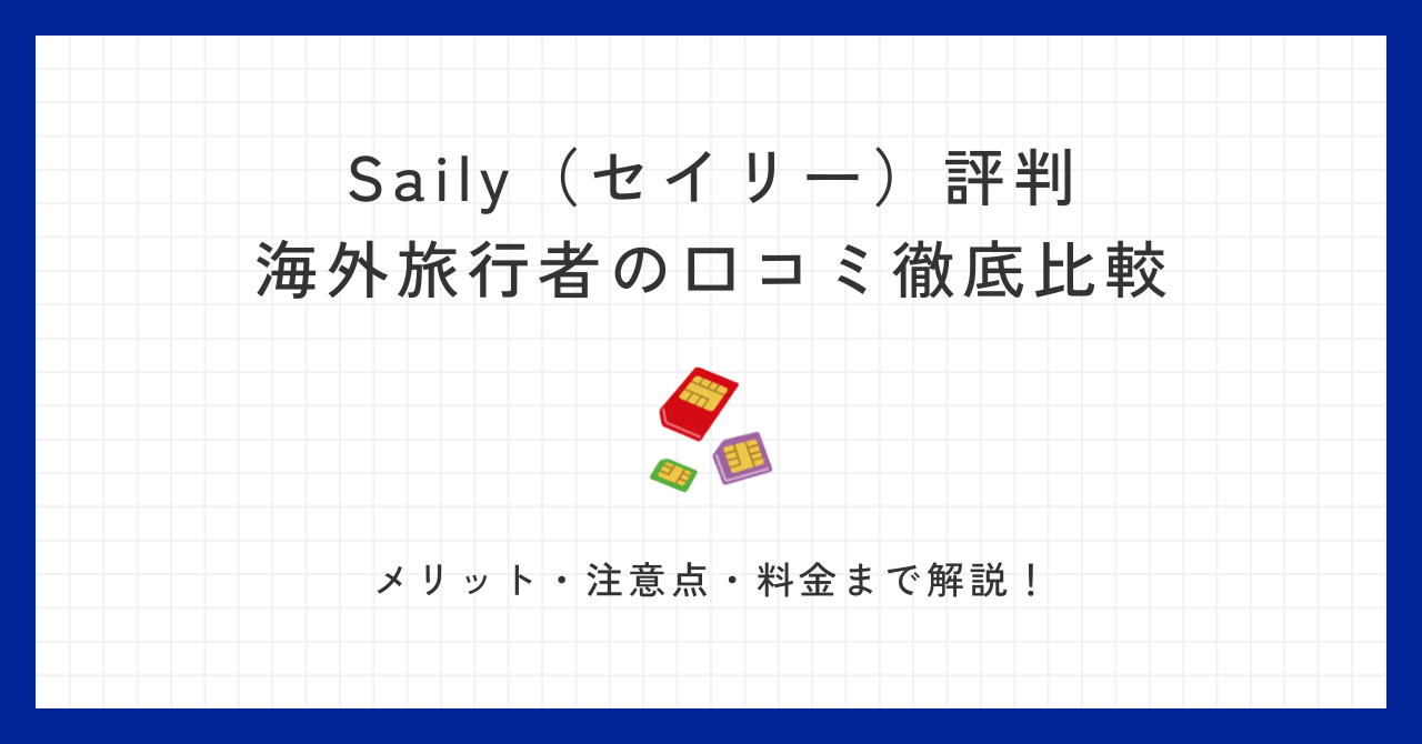 「使いやすいの?」「料金は高くない?」「安定して繋がる?」といった疑問は多くの旅行者が抱く検索意図です。本記事では、Sailyの実際の評判・口コミを徹底調査し、良い点だけでなく注意点まで丁寧に解説します。料金プランやよくある質問も含め、海外旅行前に必ず知っておきたい情報を整理しましたので、eSIM選びの参考にしてください。